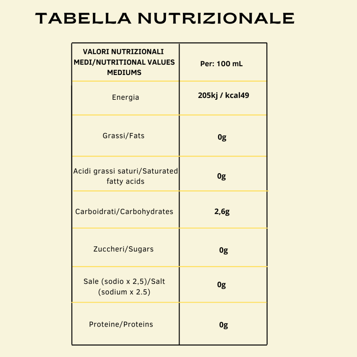 Ingredienti: vino, aroma pesca acqua, saccarosio, CO2.